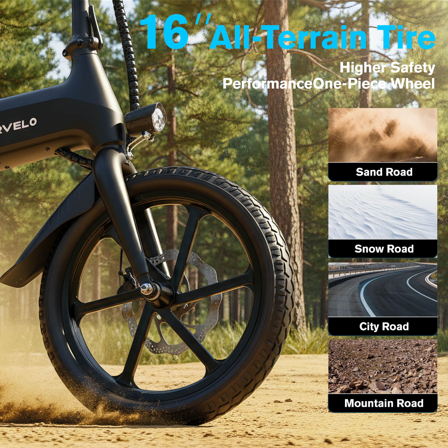 • 468WH Long Range Battery-Equipped with a upgraded capacity removable battery, Cybervelo EK13 ebike long range 16" fat tire electric bike can travel up to 50-60 miles with pedal assist.Cybervelo E-bike, perfect for daily commuting, the durable upgraded detachable battery and IP54 waterproof rating can be conveniently charged in just 4-5 hours, whether you're at home or in the office.
