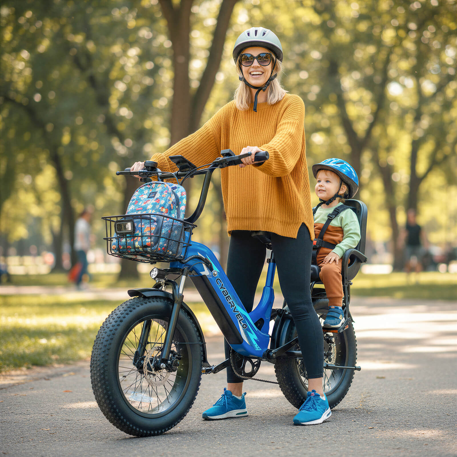 Yes, Cybervelo EK12 is equipped with a front basket rack, suitable for shopping, commuting, and family rides.