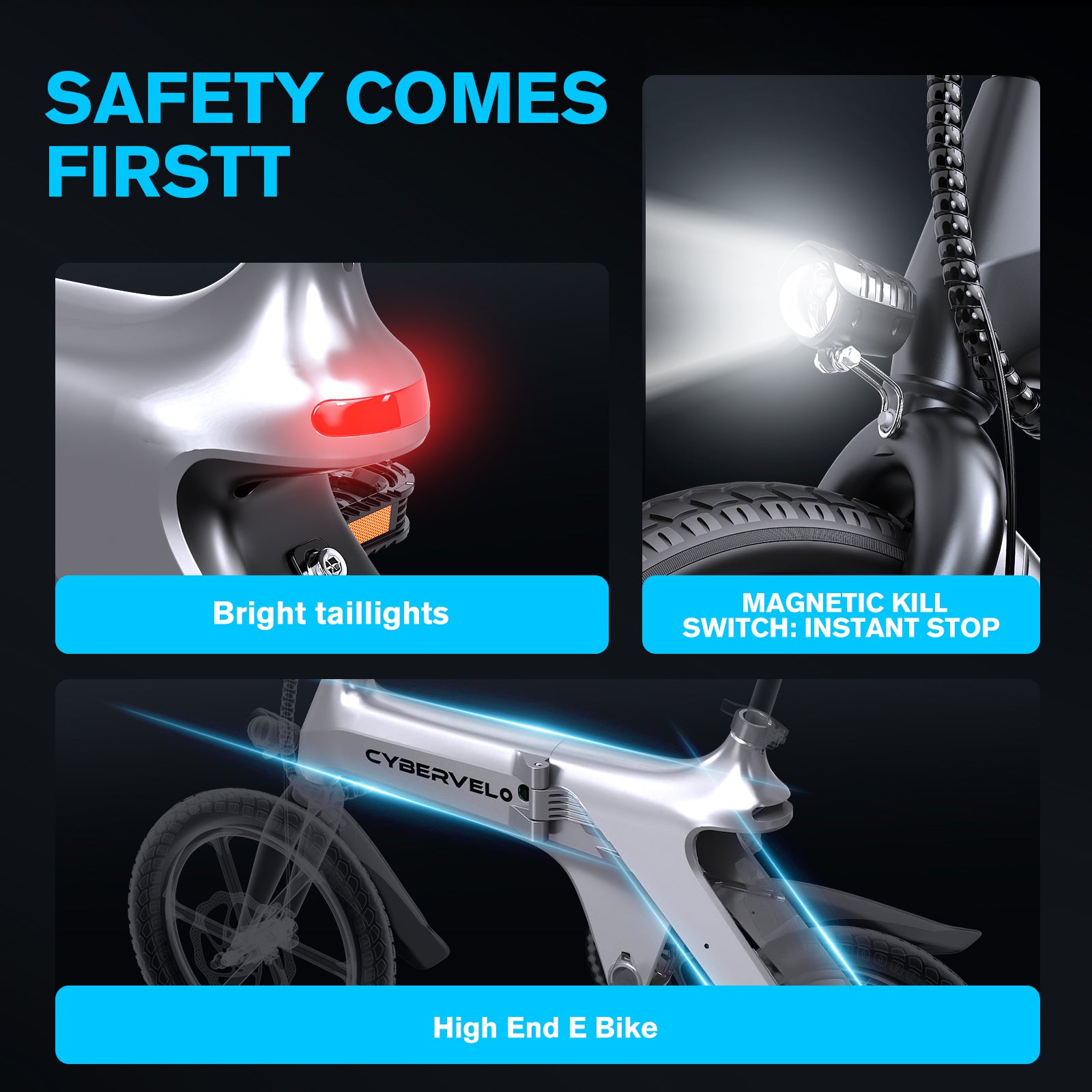 Cybervelo electric bicycles comply with UL2849, UL 2771, EN 15194, UN 38.3, and MSDS certifications.Complies with USA standards.