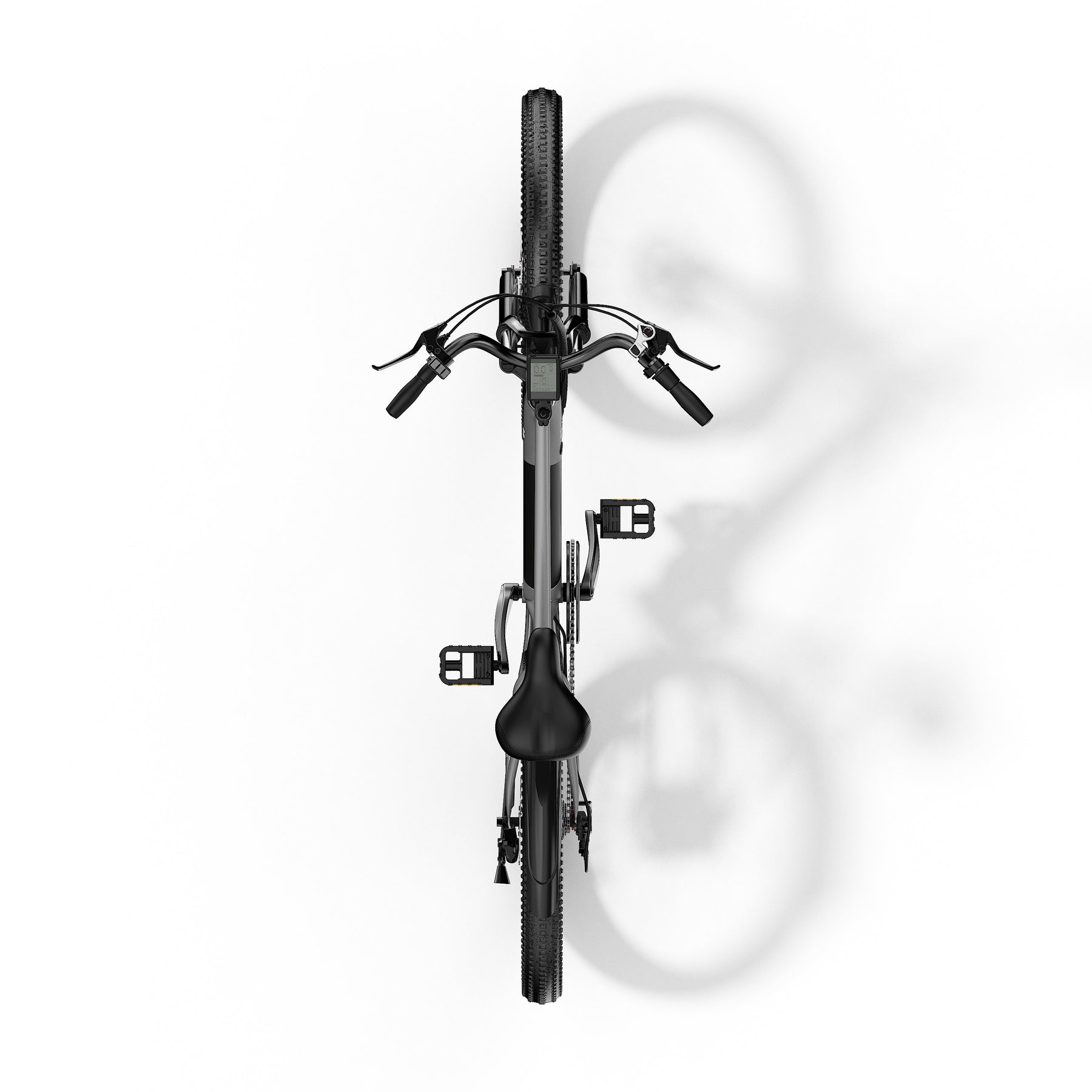 The multifunctional real-time display shows cycling data, including current speed, single-ride distance, total distance traveled, and battery level.